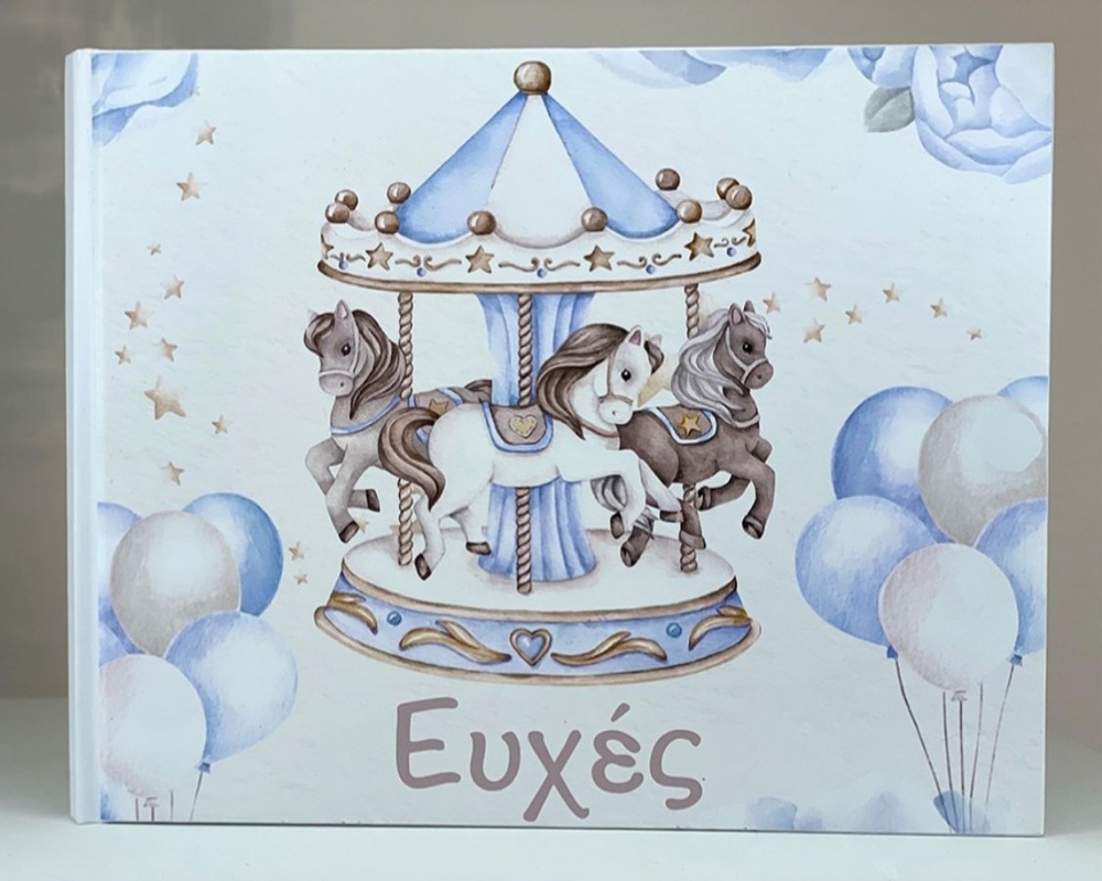 Βιβλίο ευχών για Αγόρι Carousel σε λευκό βιβλίο ευχών