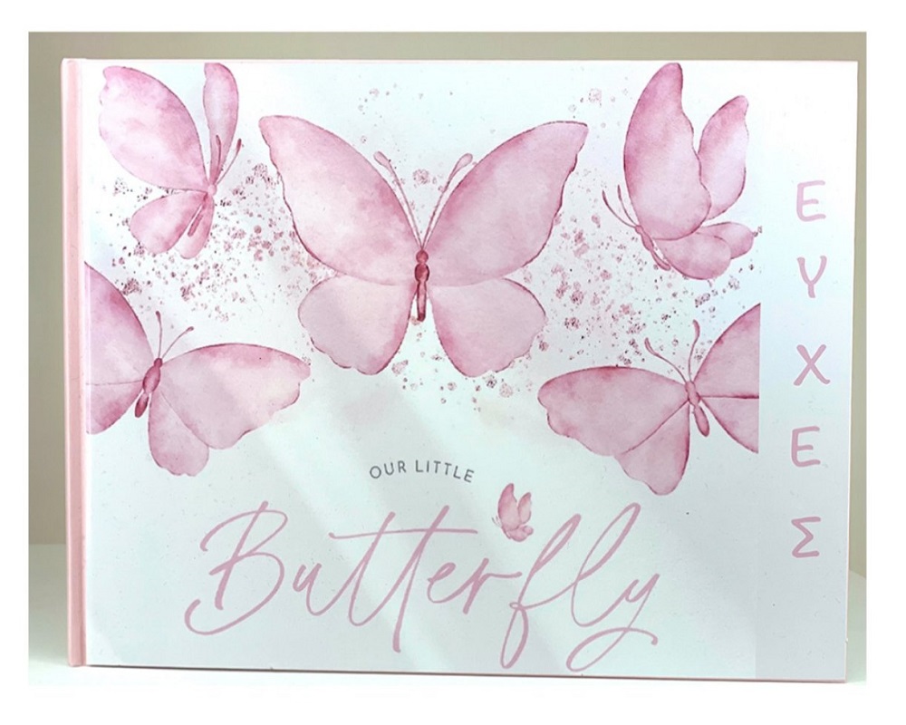 Βιβλίο ευχών για Κορίτσι πεταλούδες ροζ σε ροζ βιβλίο ευχών