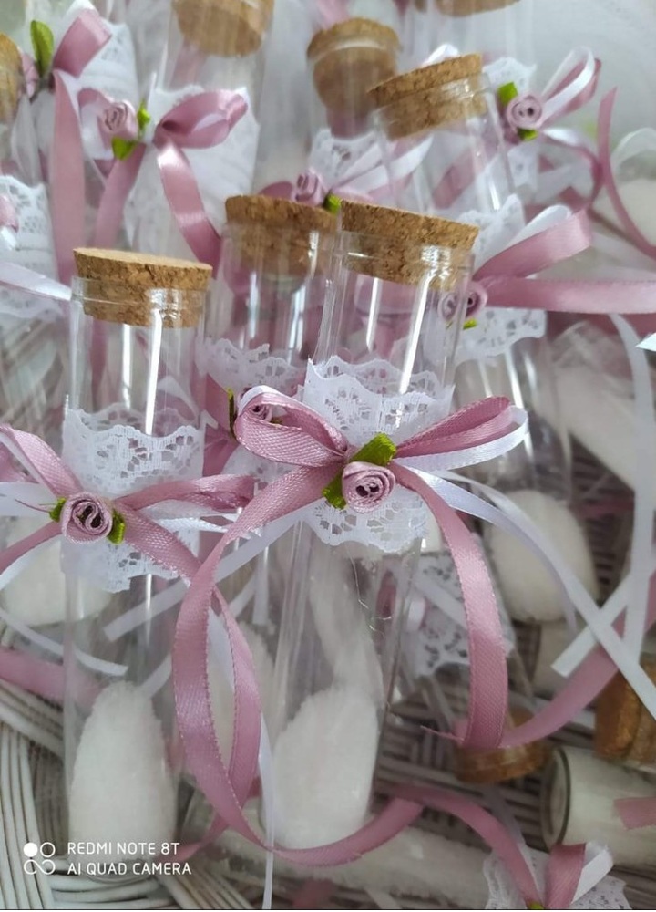 Μπομπονιέρα γάμου, Γυάλινος σωλήνα με πέντε κουφέτα ποσότητα