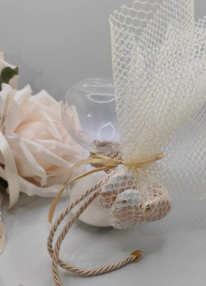 Μπομπονιέρα γάμου, Κλεψύδρα γυάλινη με 5 κουφέτα και γεύσεις χρυσό