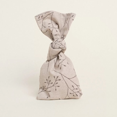 Μπομπονιέρα γάμου, πουγκί βαμβακερό με πέντε κουφέτα