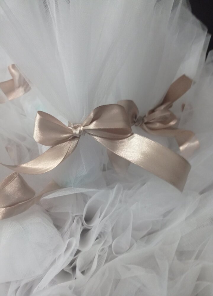 Μπομπονιέρα γάμου, πουγκί τούλι και πέντε κουφέτα