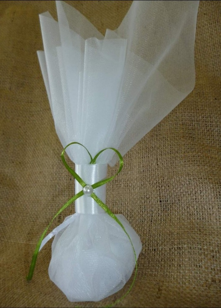 Μπομπονιέρα γάμου, πουγκί με τούλι και πέντε κουφέτα