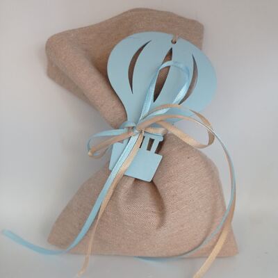 Mπομπονιέρα για Αγόρι Πουγκί βαμβακερό ξύλινο αερόστατο