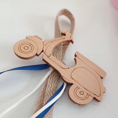 Μπομπονιέρα για Αγόρι vespa Κρεμαστό κουφέτο crispy ξύλινο. ποσότητα